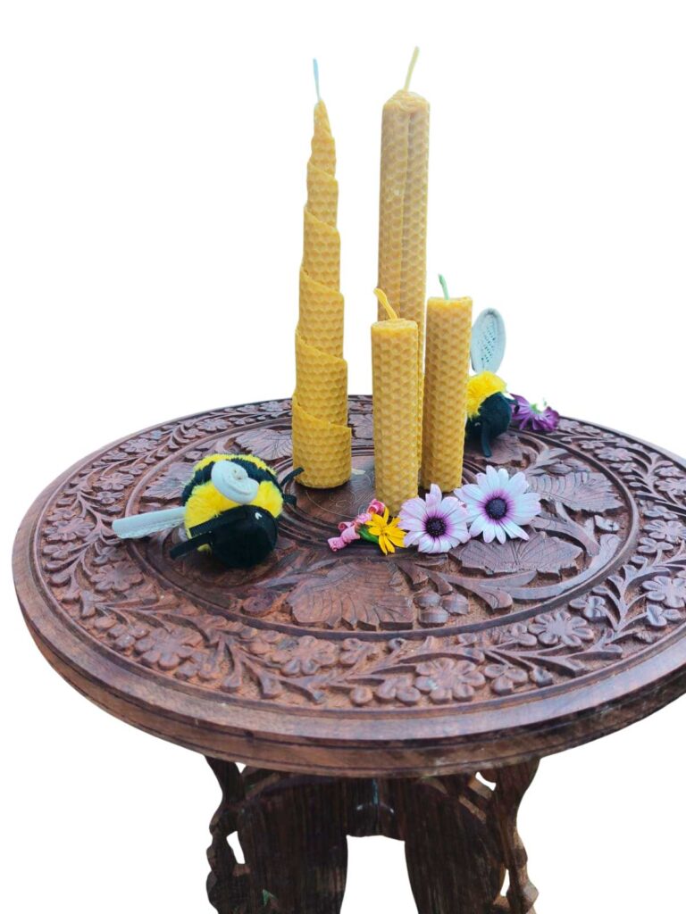 Velas artesanales hechas con cera pura de abeja y algunas en cera de soja en molde, todas ritualizadas y creadas con intención.